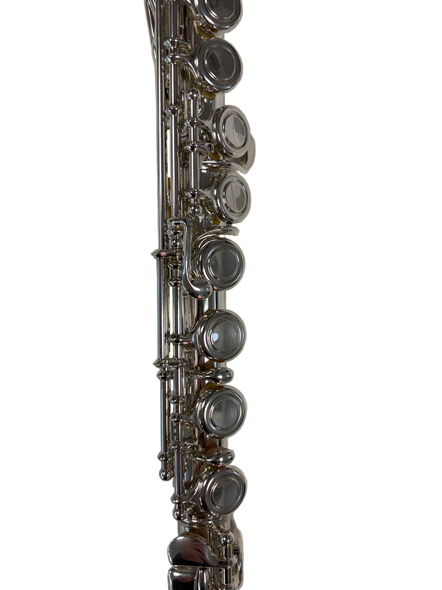 The Azumi flutes are loved for their soft and colourful tone. The 95.8% Britannia silver head-joint (more silver content than sterling) facilitates a sweeter, purer sound and allows the player to play with mature sound and dynamic versatility. It features a Split-E mechanism, and Z cut Professional Altus head-joint for a clear, precise sound.