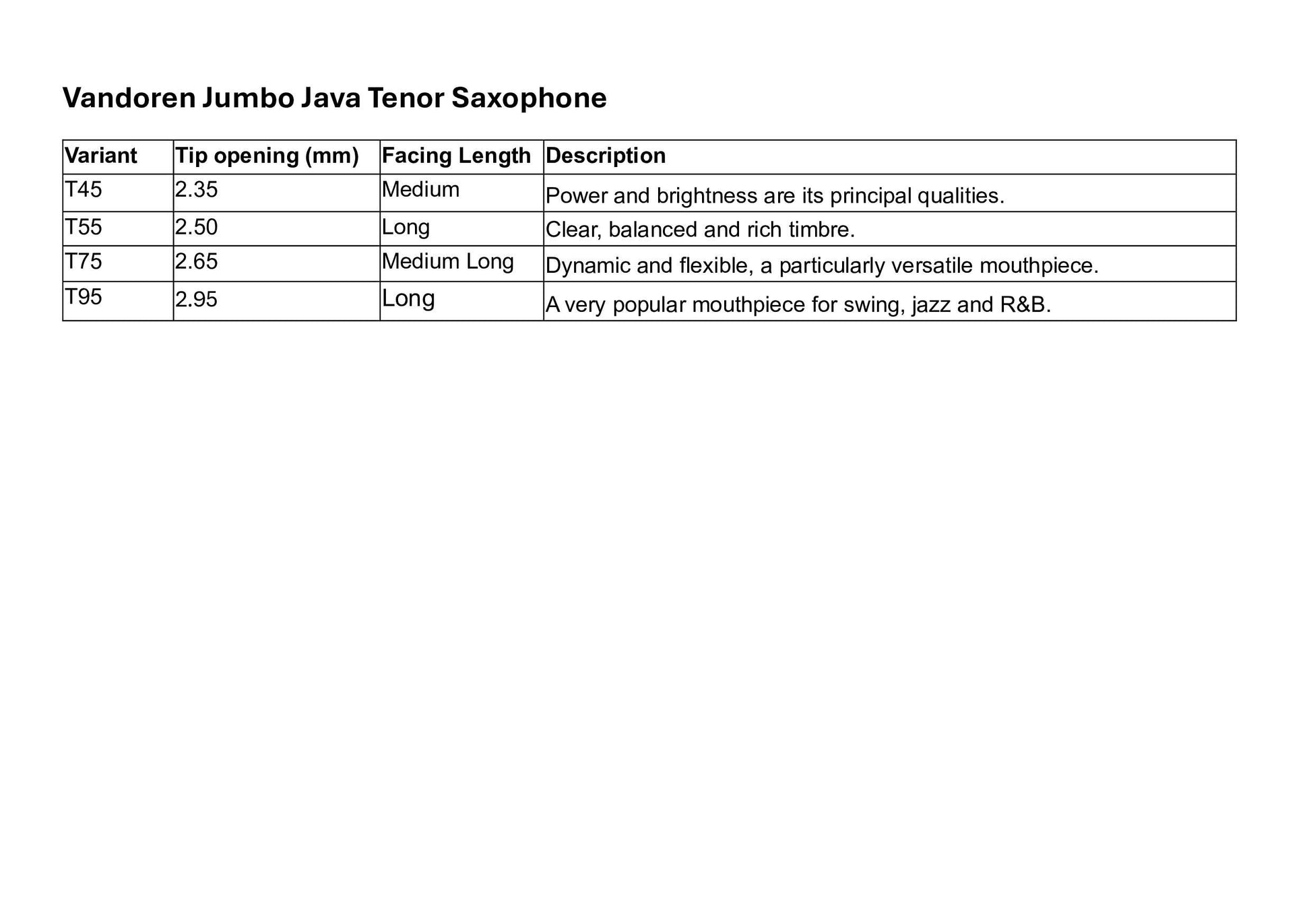 The Vandoren Jumbo Java Tenor saxophone mouthpiece is the most hard-hitting mouthpiece of the line.