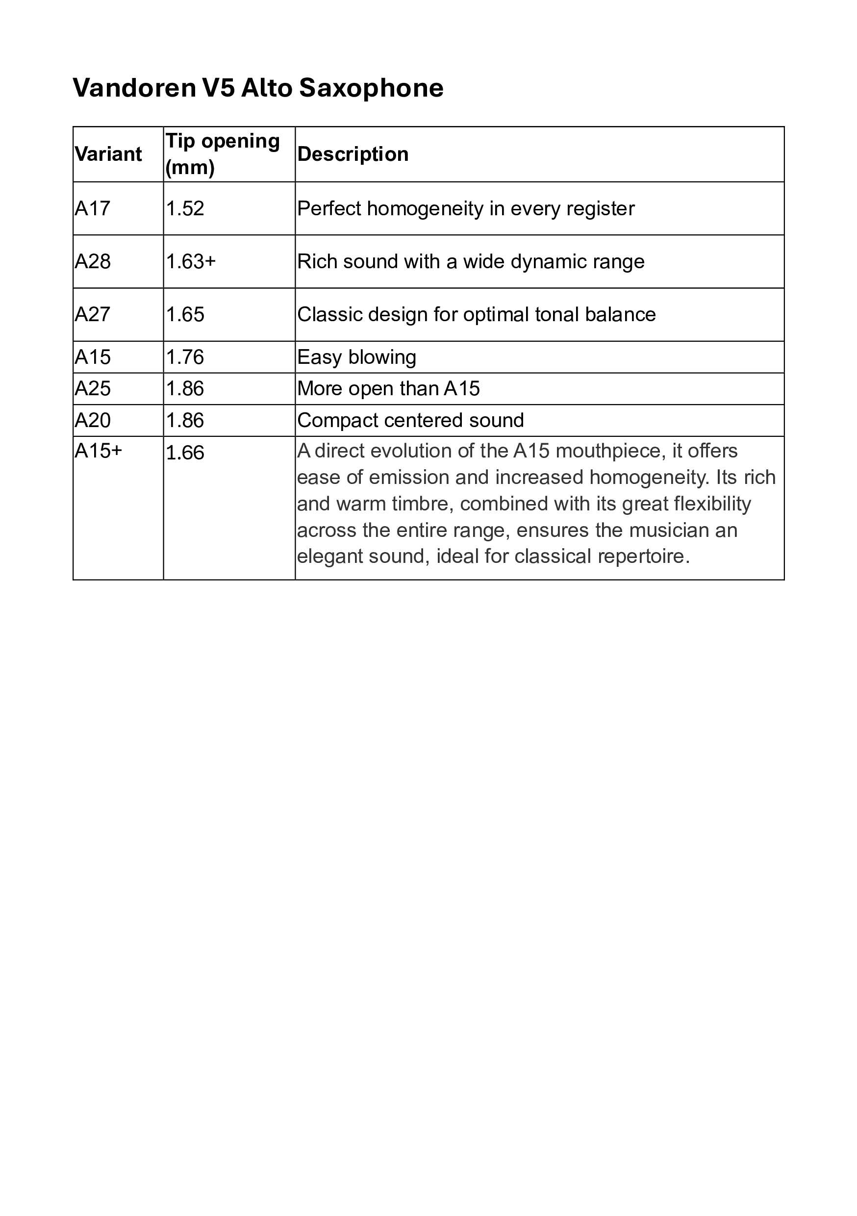 The Vandoren V5 Alto Saxophone Mouthpiece is recognized for its rich sound, colour, and dynamic range.