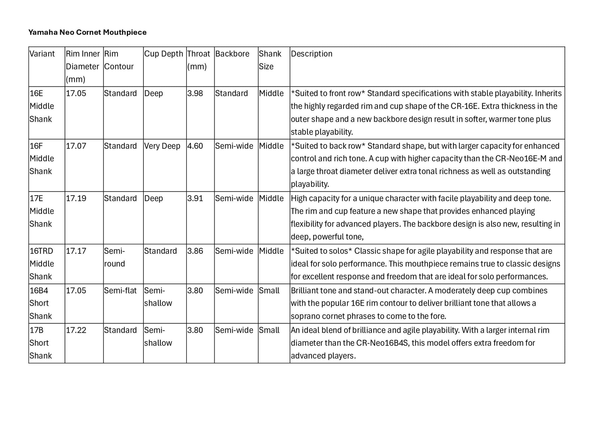 Yamaha has created the new Neo™ Mouthpieces primarily for use in British brass bands.